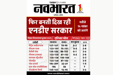 बिहार में दो चरणों का मतदान मंगलवार शाम को समाप्त होने के बाद ‘एग्जिट पोल’ ने राजग की बड़ी जीत की भविष्यवाणी की है, जबकि महागठबंधन दूसरे स्थान पर बताया जा रहा है. इसमें पहली बार चुनाव लड़ रही प्रशांत किशोर की पार्टी ‘जन सुराज’ के निराशाजनक प्रदर्शन की संभावना व्यक्त की गई है. ‘एग्जिट पोल’ के मुताबिक, जन सुराज पार्टी को 243 सदस्यीय विधानसभा में से 0-5 सीट मिलने का अनुमान लगाया गया है.