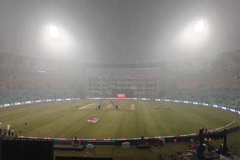 चौथा टी20 अंतरराष्ट्रीय आधिकारिक तौर पर ‘अत्यधिक कोहरे’ के कारण बिना एक भी गेंद फेंके रद्द कर दिया गया लेकिन सच्चाई यह थी कि प्रदूषण और कोहरे की एक मोटी चादर ने इकाना स्टेडियम को घेर लिया था जिससे दृश्यता बहुत कम हो गई थी. बुधवार को लखनऊ में वायु गुणवत्ता सूचकांत (एक्यूआई) 400 से ऊपर खतरनाक स्तर में रहा जिससे खिलाडि़यों के कल्याण के प्रति बीसीसीआई की प्रतिबद्धता पर गंभीर सवाल उठ रहे हैं. स्टार ऑलराउंडर हार्दिक पंड्या को मैच से पहले भारतीय टीम के वार्म-अप के दौरान प्रदूषण से बचने के लिए र्सिजकल मास्क पहने देखा गया.
